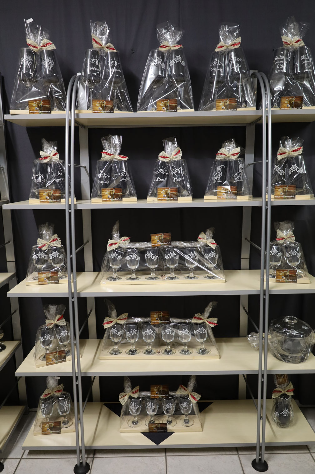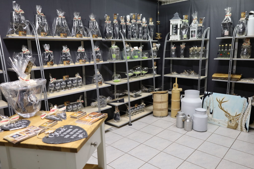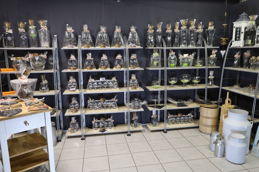 In meinem Ausstellungsraum habe ich ein grosses Sortiment an gravierten